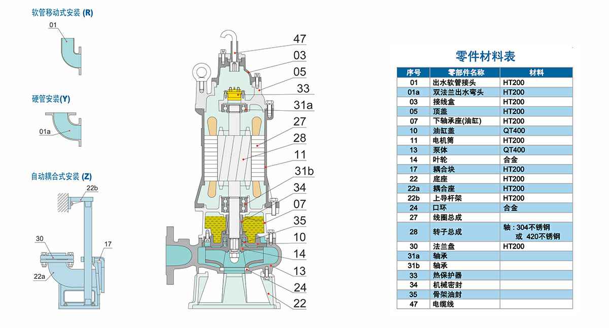 ZJQ潜水渣浆泵为压滤机及环保设备专用配套水泵。能够满足抽送泥沙、砂砾等磨损性及腐蚀性介质使用要求。